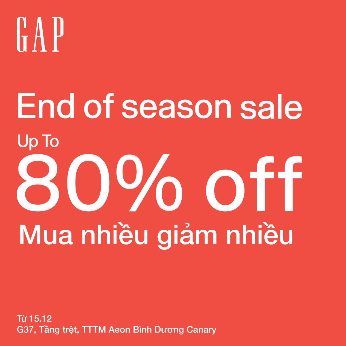 GAP I END OF SEASON SALE - UP TO 80%, SHOP MORE, SAVE MORE