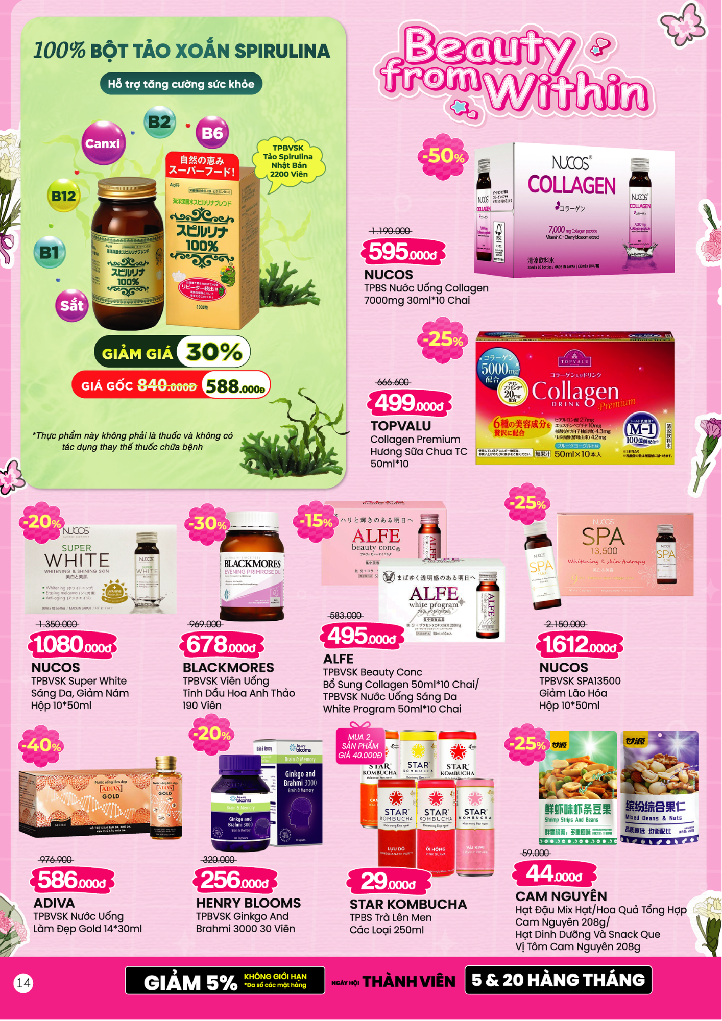 ✨ Giảm sốc 30% – 50% cho các thương hiệu “hot hit” như: Hatomugi, Nucos, Anessa, Dprogram, Rohto…