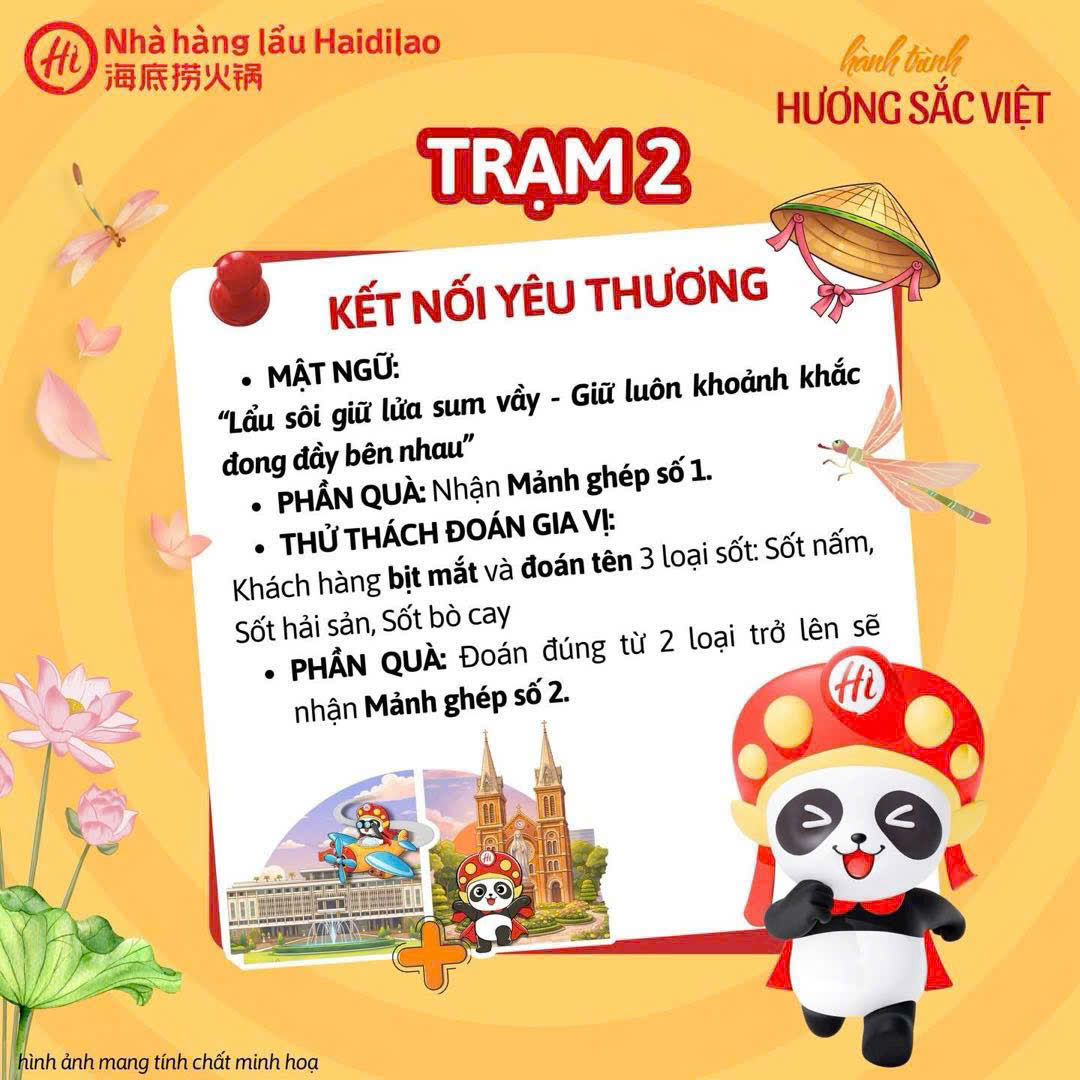 Trạm dừng chân mang tên HÀNH TRÌNH HƯƠNG SẮC VIỆT đã chính thức “lên sóng” tại Haidilao. Hi Fans ghé Haidilao dùng bữa sưu tầm mảnh ghép nam châm tủ lạnh độc quyền để có cơ hội nhận ngay voucher 200k.