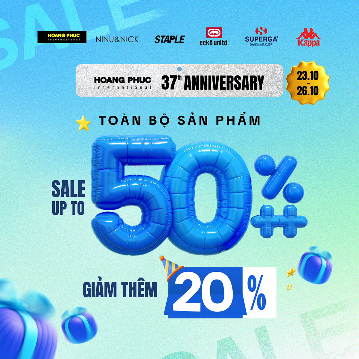 🎉HOÀNG PHÚC 37TH ANNIVERSARY 🎉 SALE UP TO 50%++ | TOÀN BỘ GIẢM THÊM 20% 37 năm – hành trình phong cách không ngừng tiến bước 💥 Từ Kappa, Ecko, Superga hàng loạt item hot nhất đang chờ bạn “chốt đơn” ngay hôm nay! 👉 4 ngày duy nhất – nhanh chân ghé ngay các cửa hàng Hoàng Phúc gần nhất!