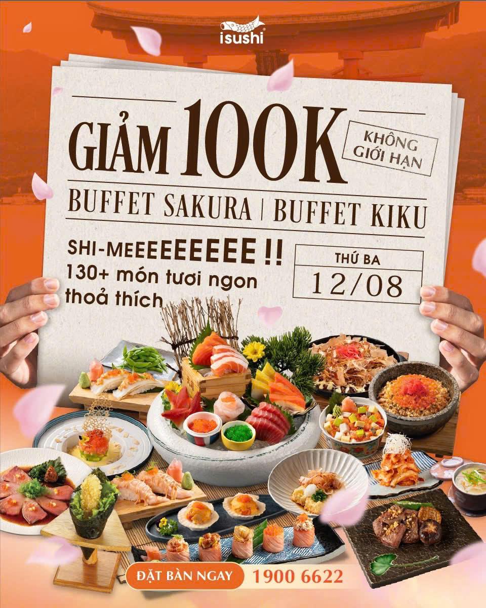 👉 Giảm ngay 100K cho buffet Sakura & Kiku – không giới hạn lượt khách, không giới hạn niềm vui!
