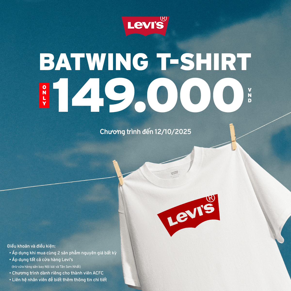 Gửi lời tri ân đến các Levi's Lovers, Levi's mang đến ưu đãi không thể bỏ lỡ sở hữu áo thun Levi's chỉ với 149.000 VNĐ khi mua kèm 02 sản phẩm nguyên giá bất kỳ.