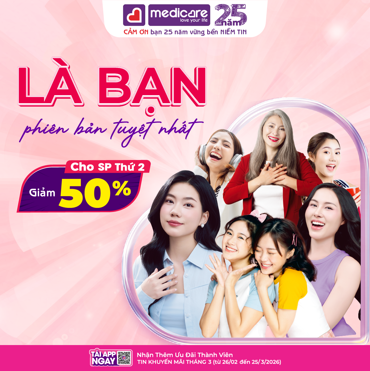 Tháng 3 này, hãy để MEDiCARE đồng hành cùng bạn trên hành trình yêu chiều bản thân, không cần là ai khác, chỉ cần "Là bạn với phiên bản tuyệt nhất" - tự tin hơn, yêu đời hơn và luôn rạng rỡ trong mọi khoảnh khắc!