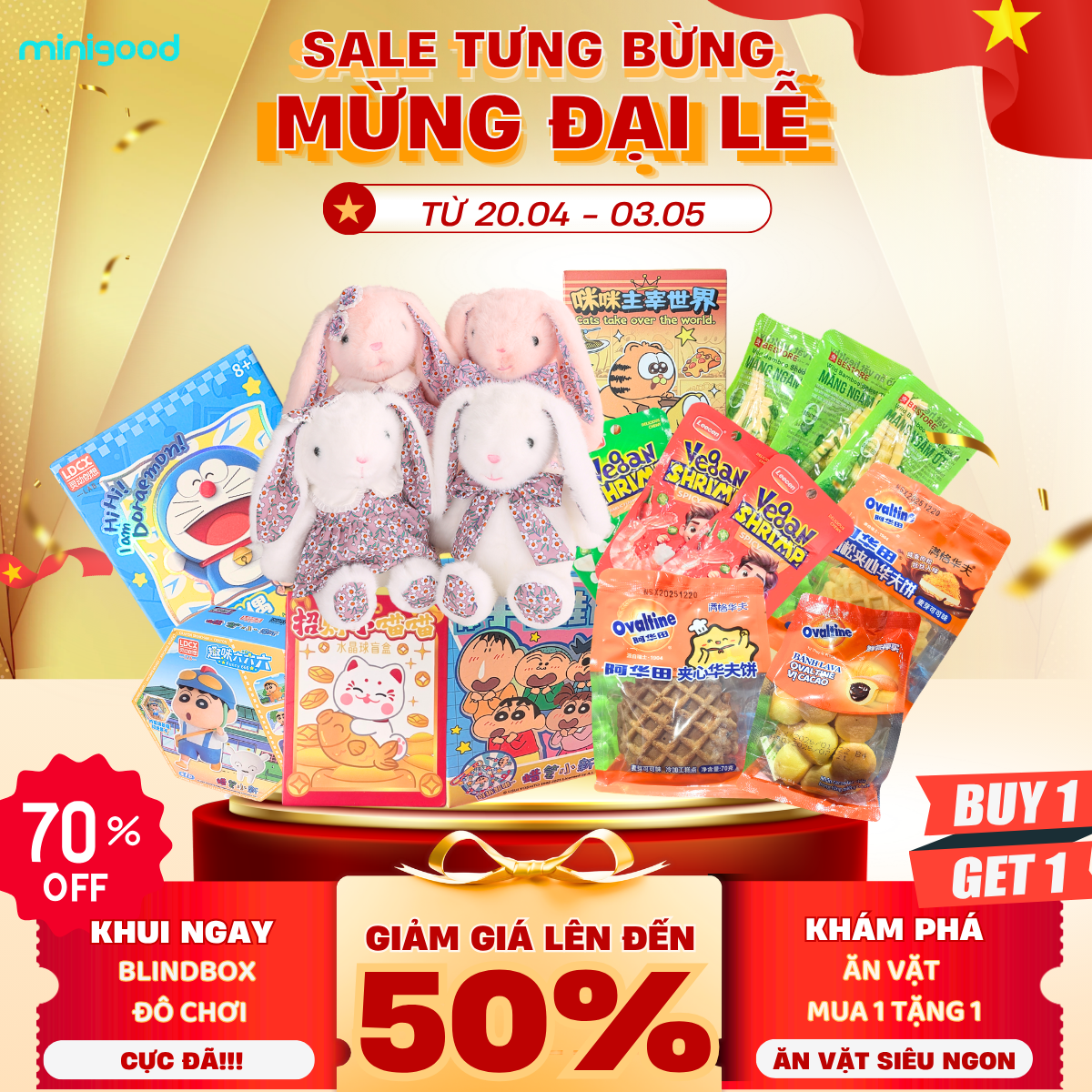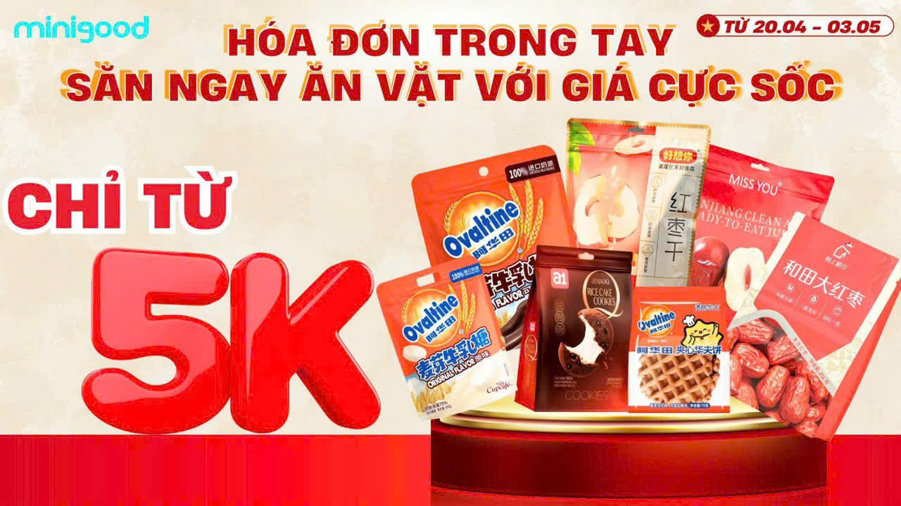 Chào mừng Đại lễ, Minigood mang đến cơn mưa ưu đãi cực hấp dẫn dành riêng cho tín đồ đồ chơi và ăn vặt. Đừng để kỳ nghỉ trôi qua nhàm chán – ghé Minigood để “F5” năng lượng ngay!