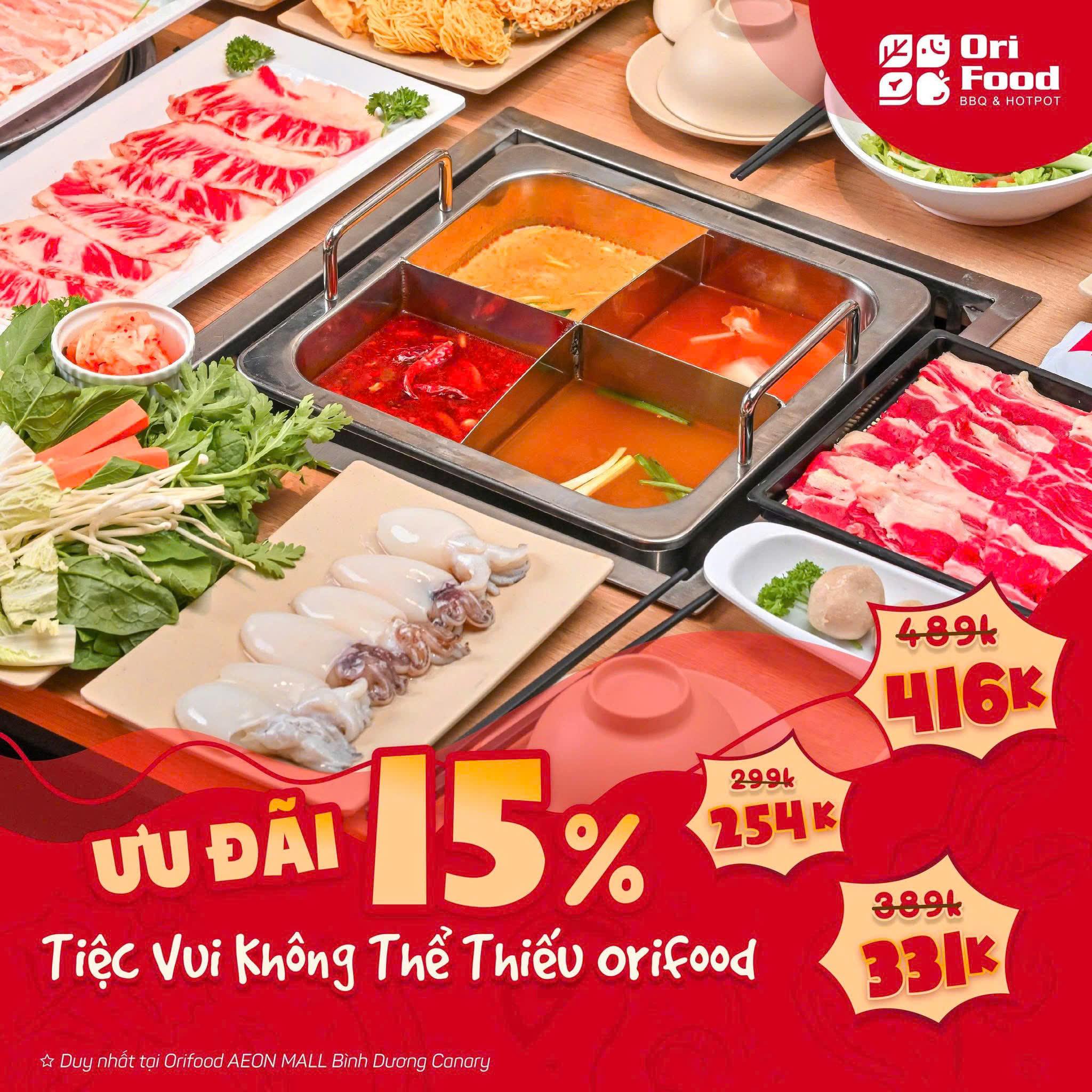 🔥 TIỆC NƯỚNG CAO CẤP GIẢM NGAY 15% – CHỈ CÓ TẠI ORIFOOD AEON MALL BÌNH DƯƠNG CANARY