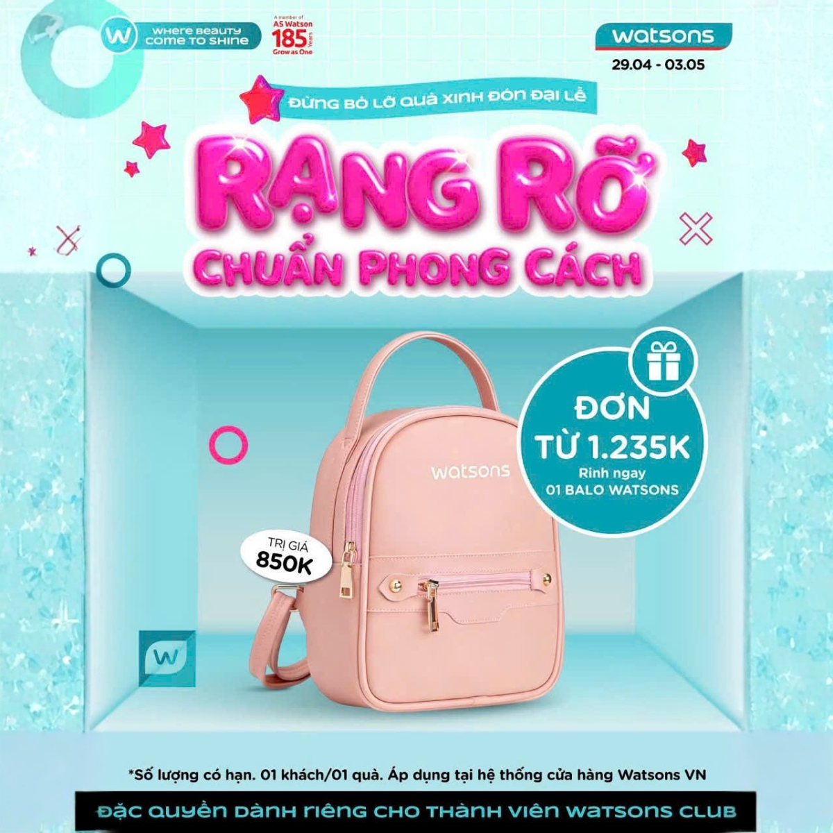 🎒 01 Balo Watsons trị giá 850.000đ – món quà đồng hành cùng bạn trên mọi chuyến vi vu mùa lễ.